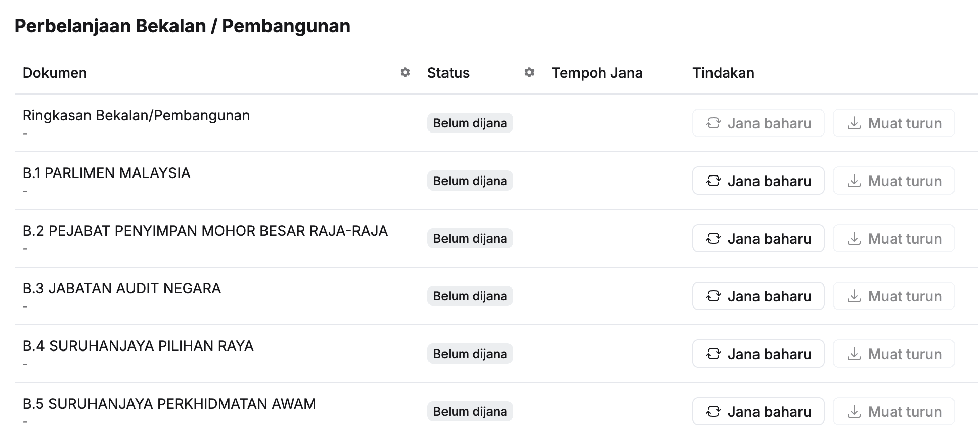- Klik Jana baharu pada sudut kanan maksud perbelanjaan yang berkaitan