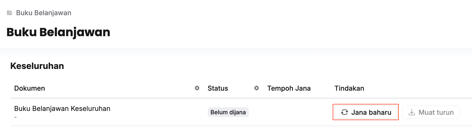 - Klik Jana baharu pada sudut kanan Buku Belanjawan Keseluruhan