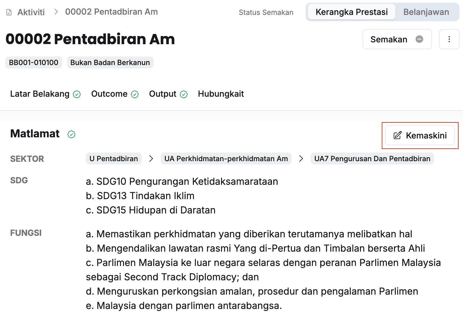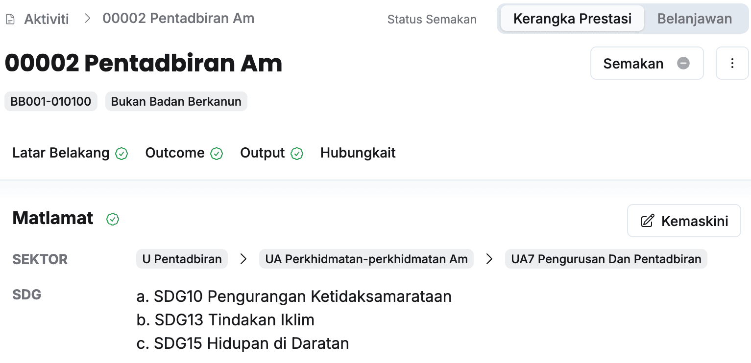 - Pastikan maklumat matlamat telah dikemaskini