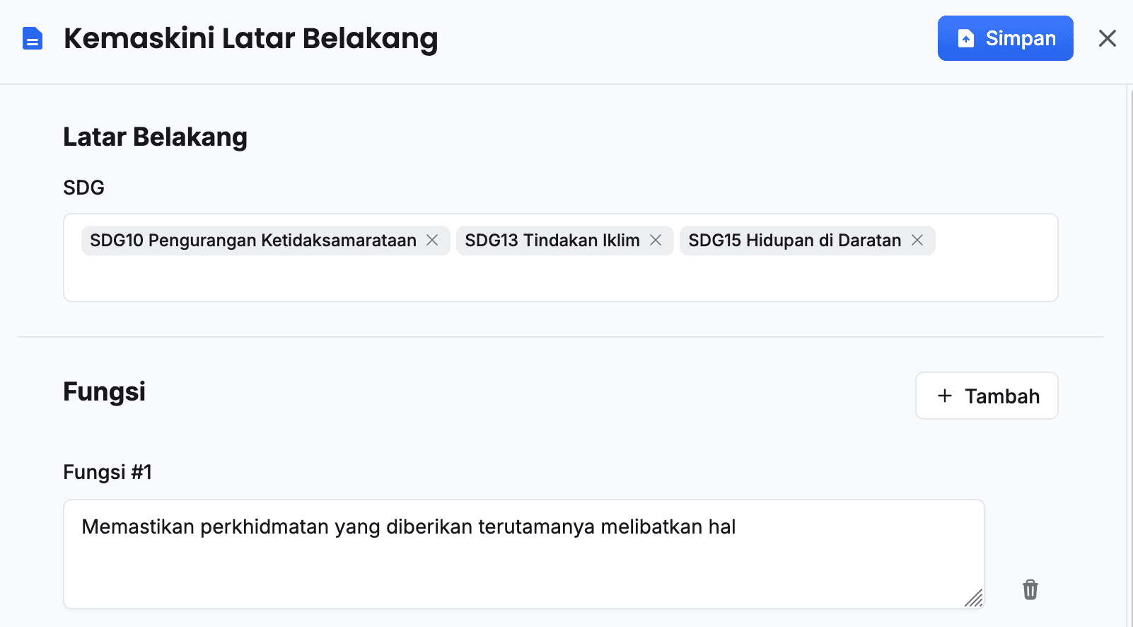 - Isikan maklumat SDG (Sebanyak 3 pilihan)