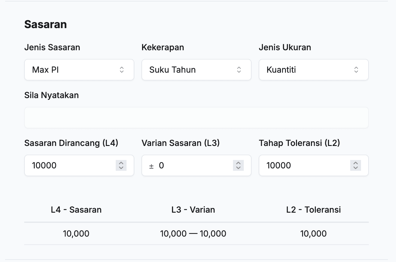 - Isikan maklumat Pecahan Sasaran menggunakan kaedah-kaedah berikut: