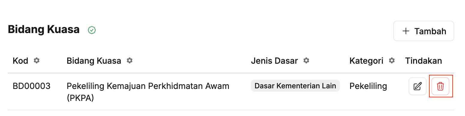 - Pastikan maklumat bidang kuasa yang berkaitan telah dikemaskini