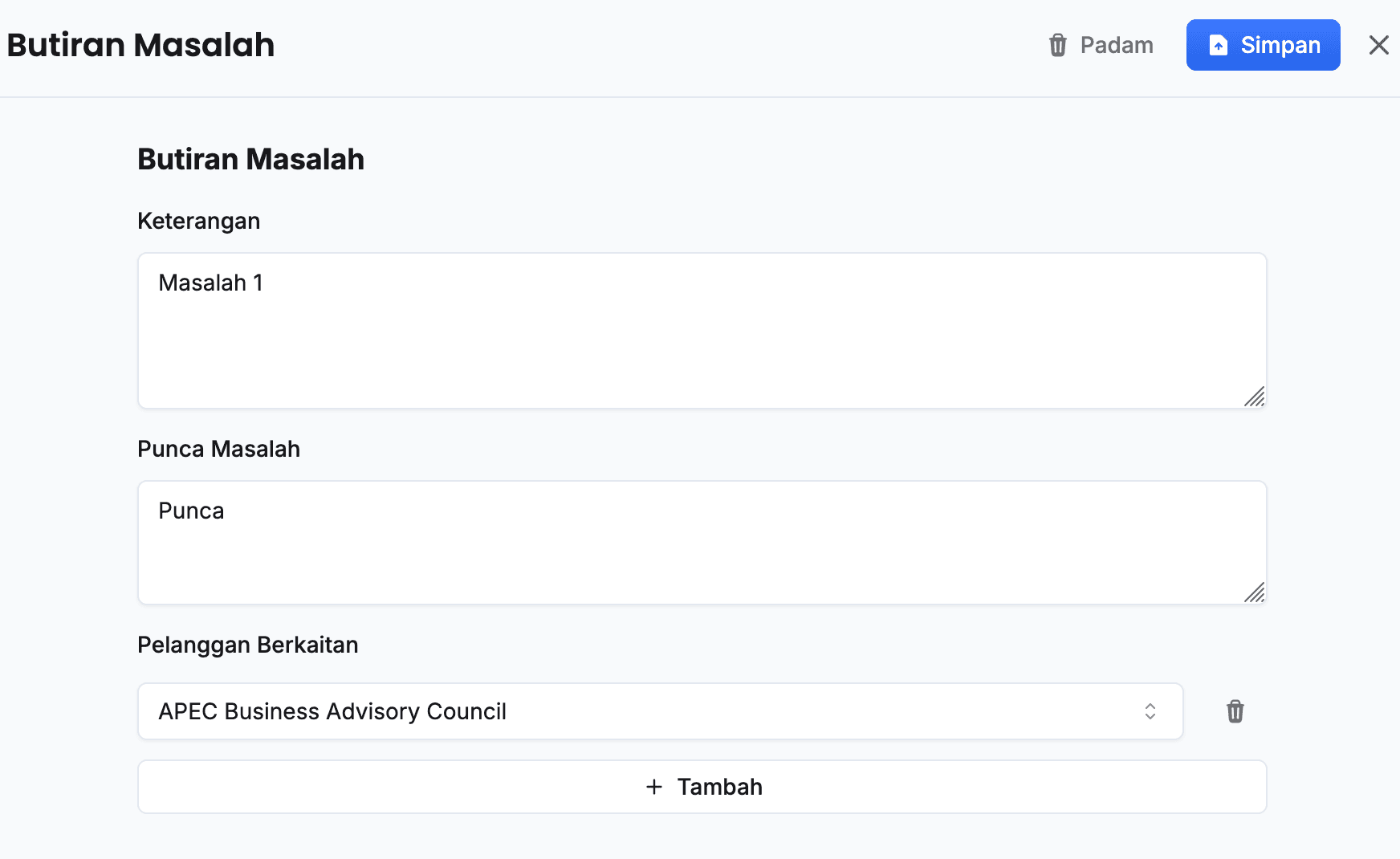 - Pastikan butiran masalah yang berkaitan telah dikemaskini