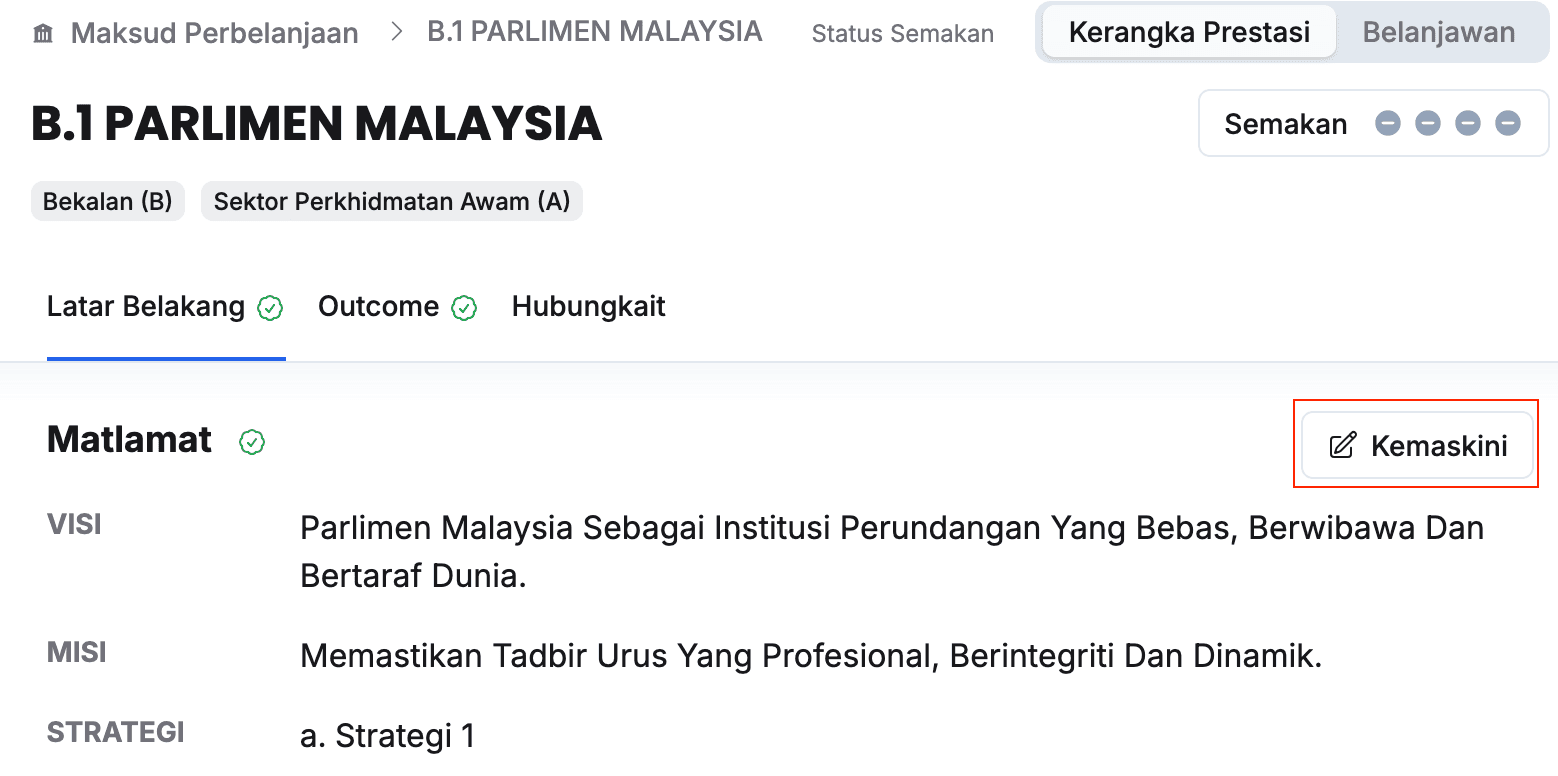 - Klik butang Kemaskini pada sudut kanan stakeholder yang berkaitan