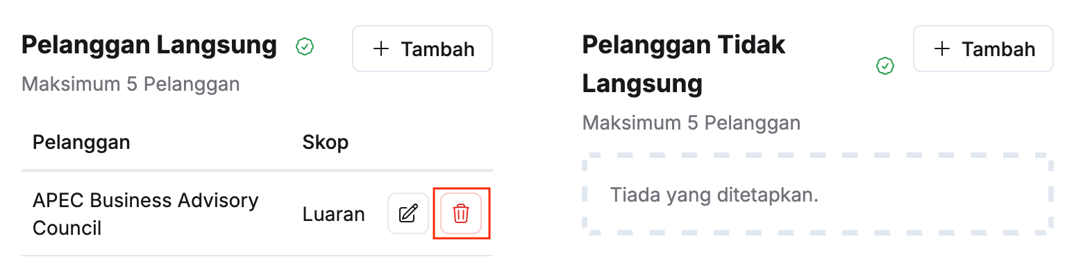 - Klik butang Padam pada sudut kanan pelanggan yang berkaitan