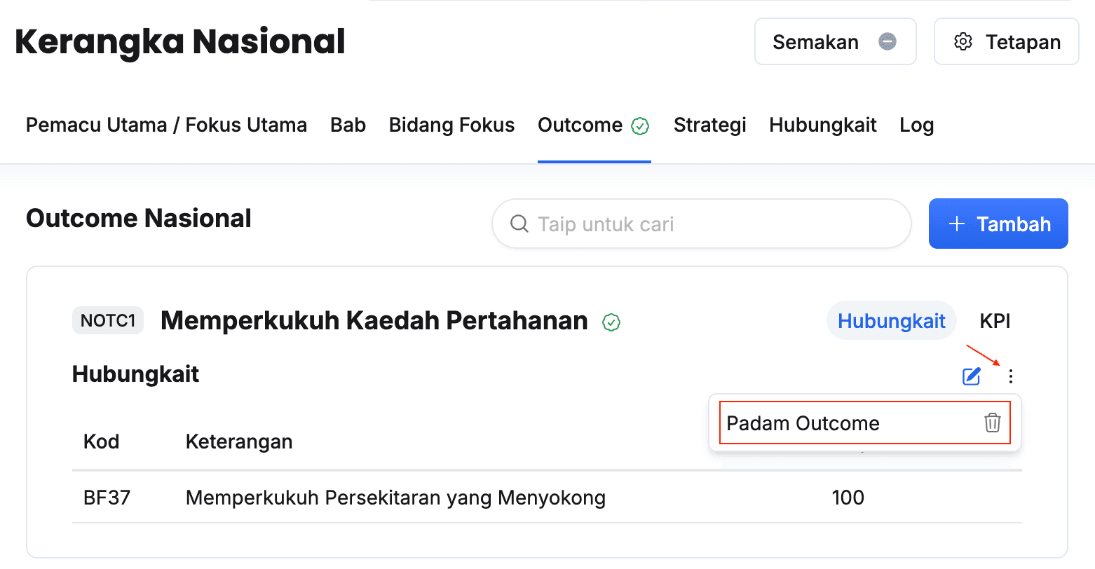 - Pastikan maklumat outcome yang berkaitan telah dikemaskini