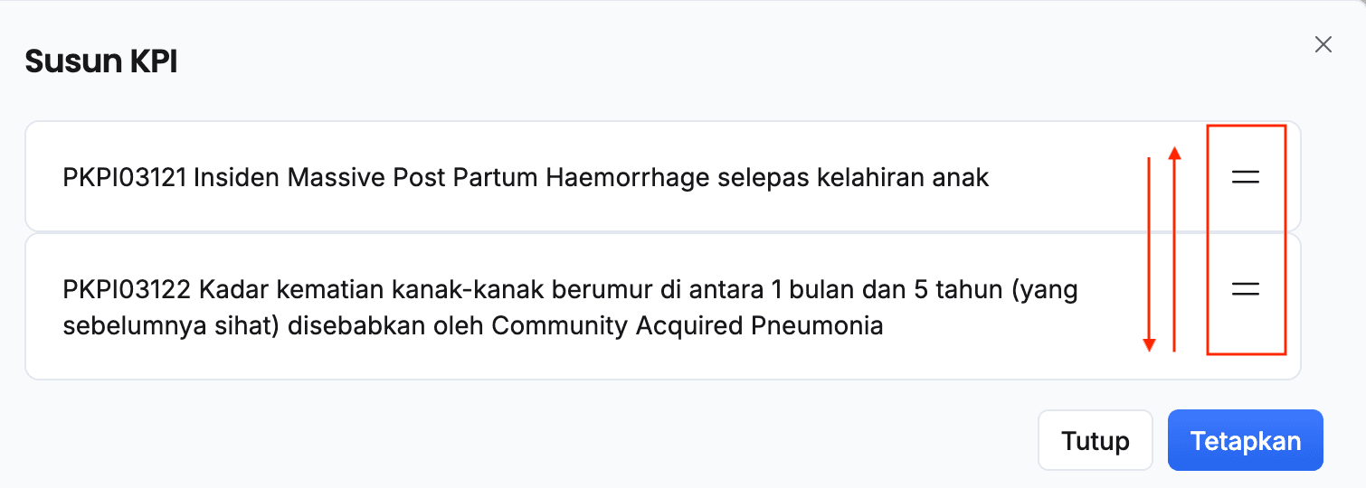 - Ubah susunan outcome melalui kaedah Drag and Drop