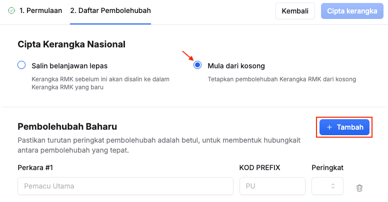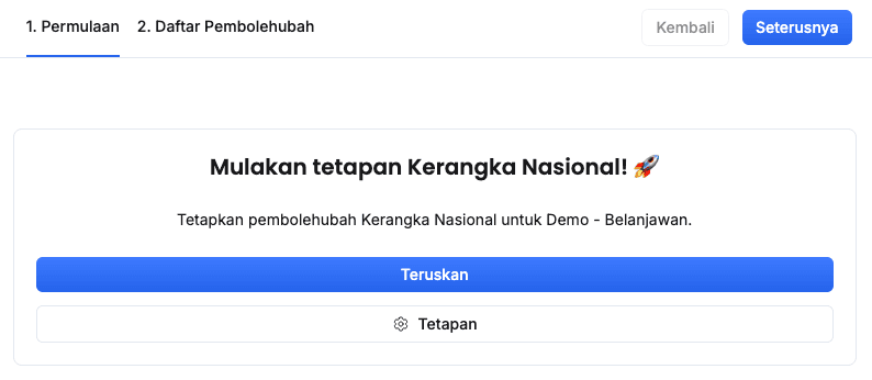 - Klik butang Teruskan pada paparan Teruskan mencipta Kerangka Nasional