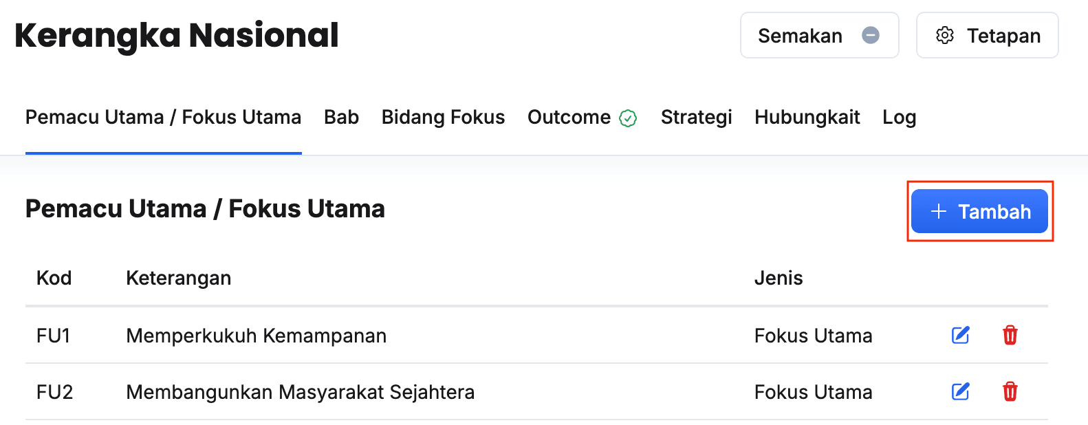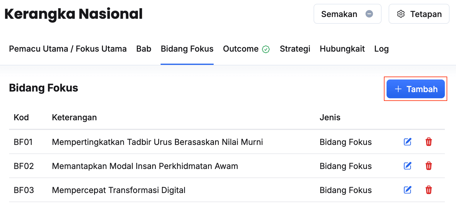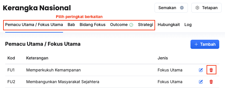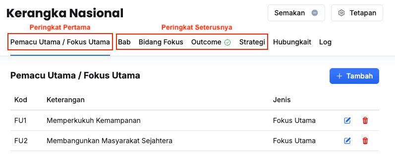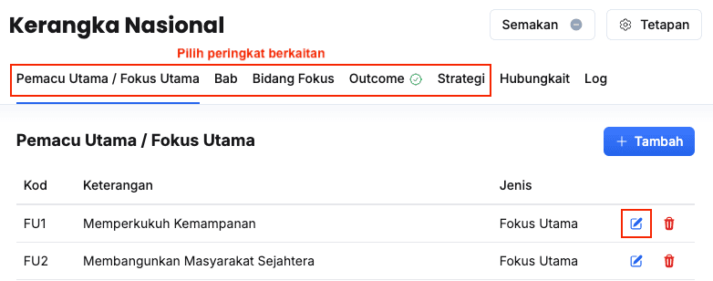 - Isikan maklumat dalam medan Peringkat pada Outcome Nasional