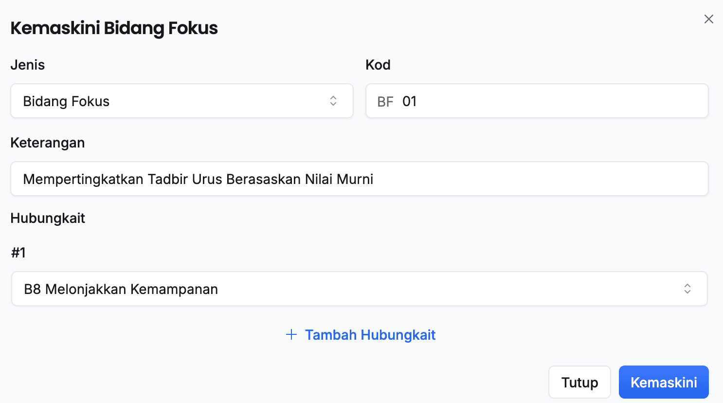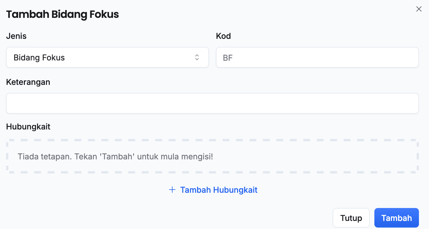 - Klik butang + Tambah Hubungkait
