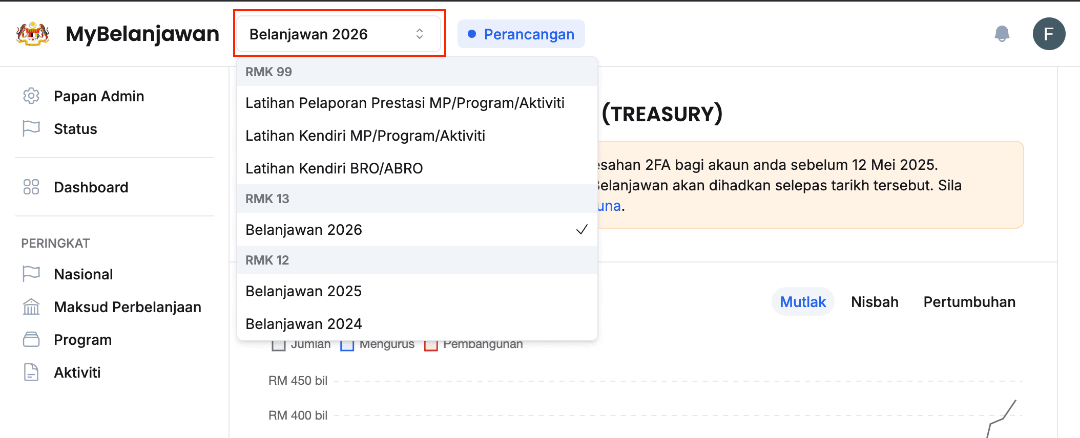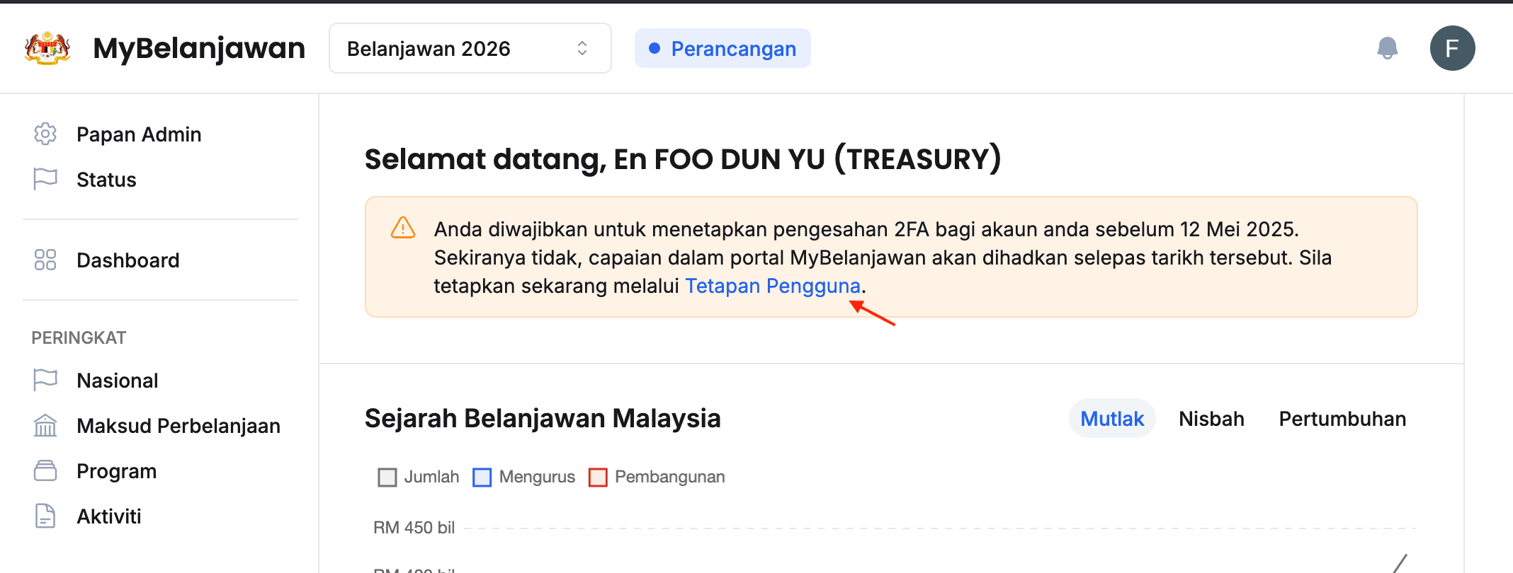 Anda berjaya terima jemputan dan log masuk ke dalam sistem MyBelanjawan