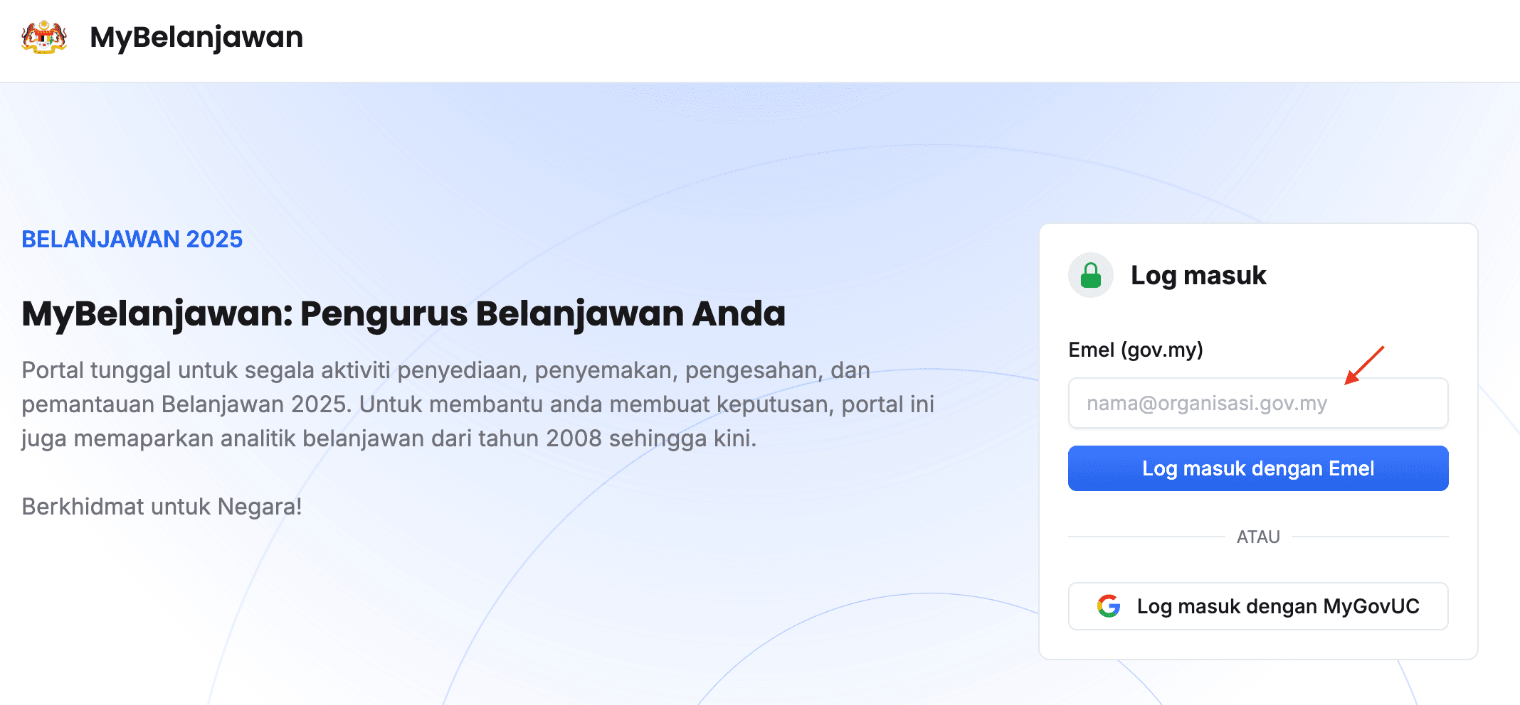 - Buka emel Log Masuk ke MyBelanjawan pada peti emel
