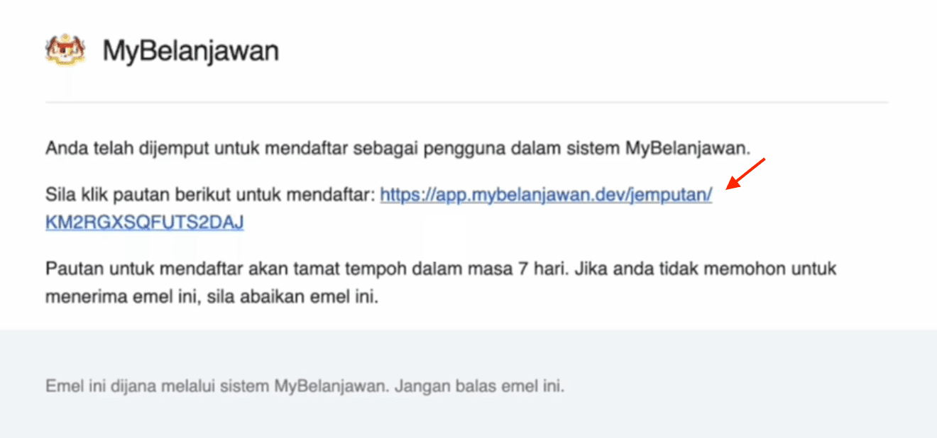- Buka emel Jemputan Pendaftaran di MyBelanjawan dan klik pautan dalam emel tersebut