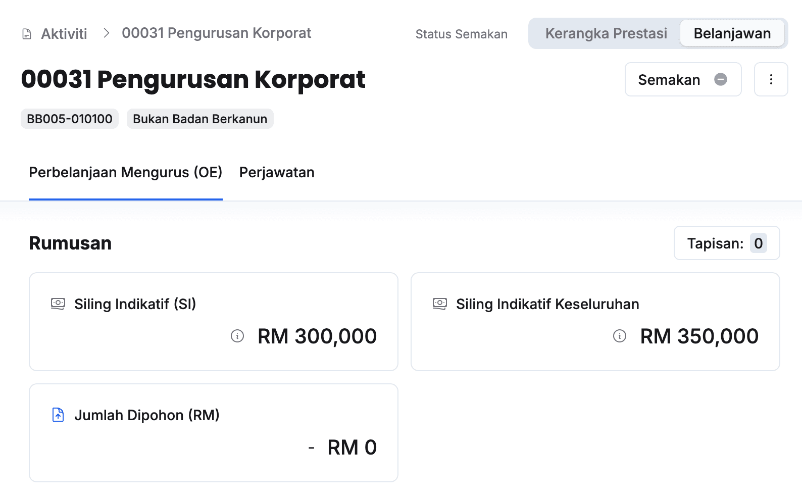 - Klik Belanjawan pada sudut kanan atas halaman aktiviti