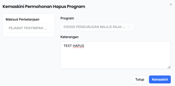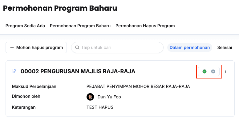 - Penyelaras MP akan menerima notifikasi sekiranya permohonan hapus program ditolak