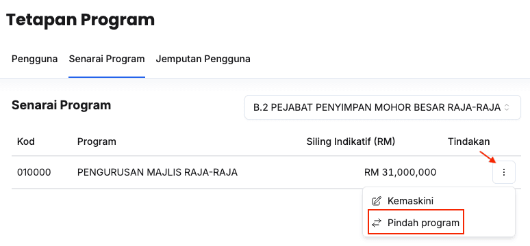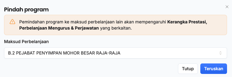 - Pastikan program telah dipindah ke maksud perbelanjaan yang berkaitan