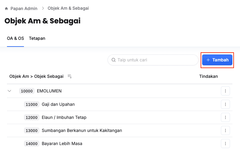 6. Pastikan objek am / objek sebagai baharu telah tersenarai