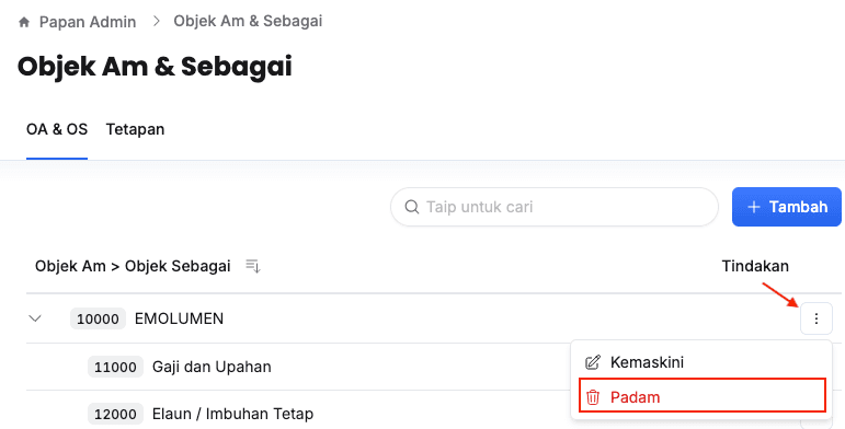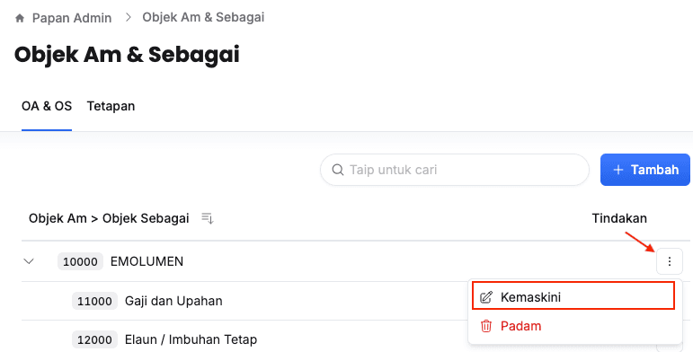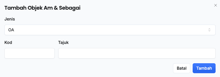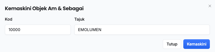 7. Pastikan butiran objek am / objek sebagai yang berkaitan telah dikemaskini