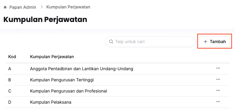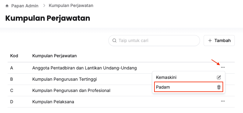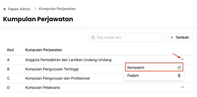 3. Klik butang 3 dots pada sudut kanan kumpulan perjawatan yang berkaitan