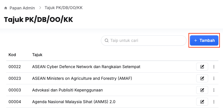 2. Klik Tajuk PK/DB/OO/KK di bawah aturan umum