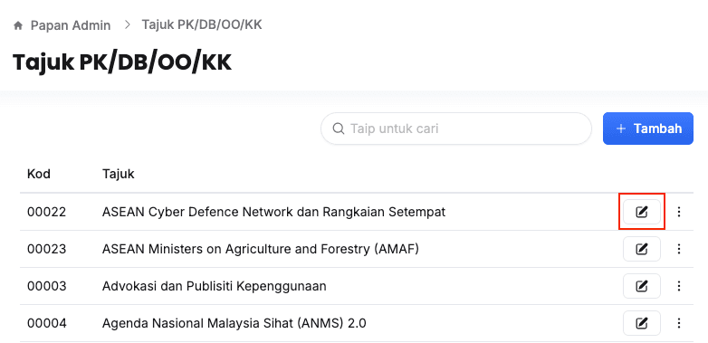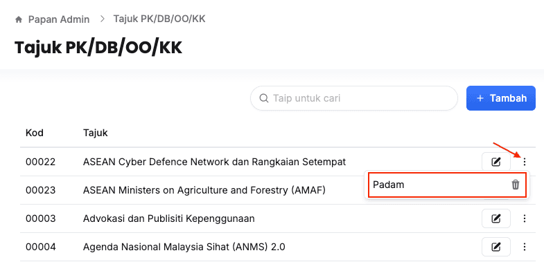 6. Pastikan tajuk aktiviti yang berkaitan telah dikemaskini