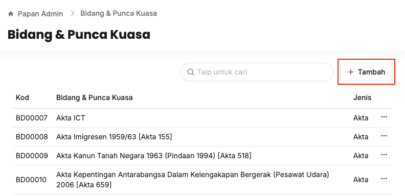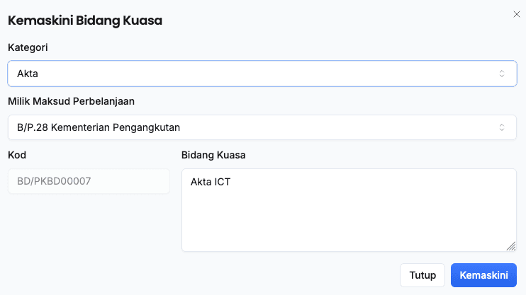 Kemaskini Maklumat Bidang & Punca Kuasa