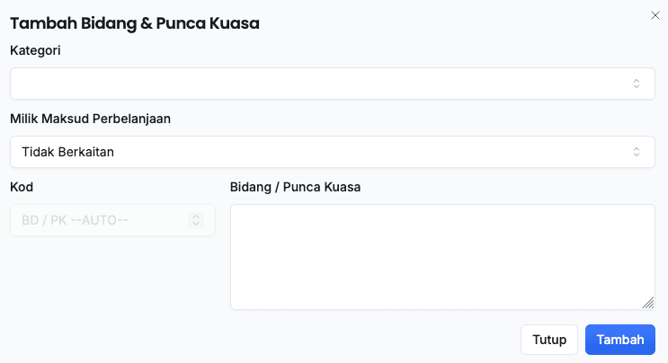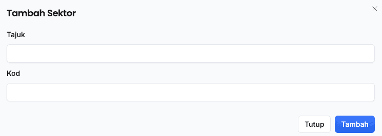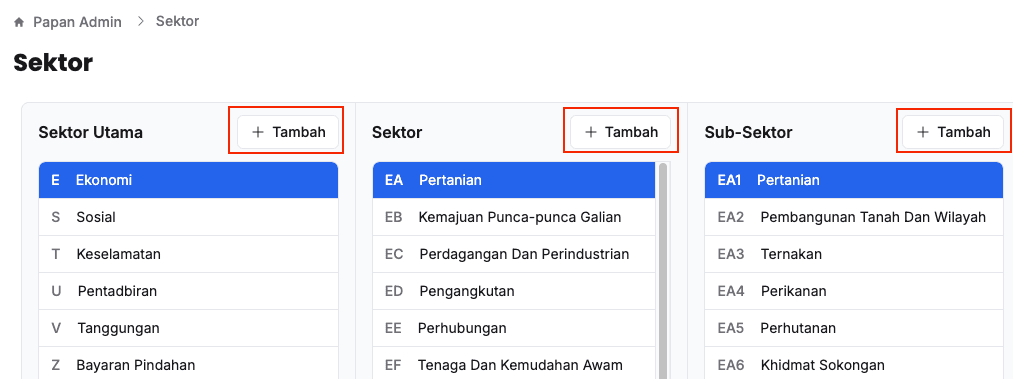 Tambah Sektor Utama/Sektor/Sub-Sektor Baharu