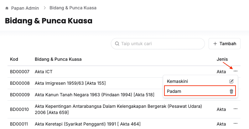 3. Klik butang 3 dots pada sudut kanan bidang/punca kuasa yang berkaitan