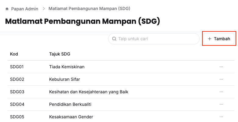 7. Pastikan maklumat SDG yang berkaitan telah dikemaskini
