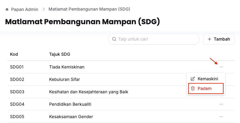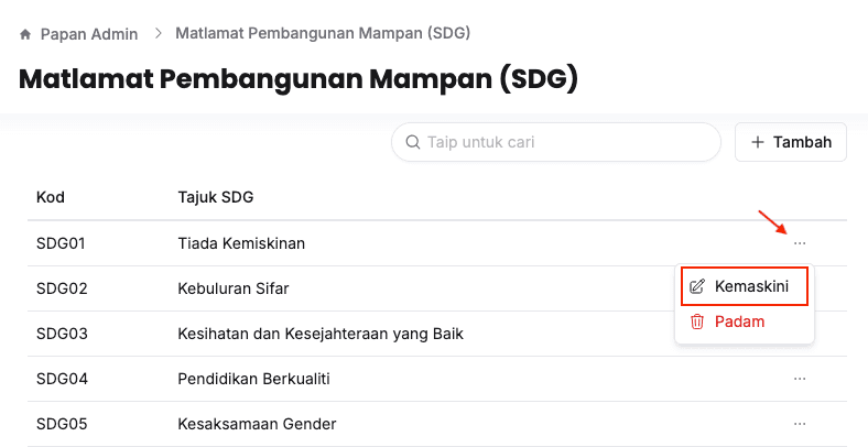 3. Klik butang 3 dots pada sudut kanan SDG yang berkaitan