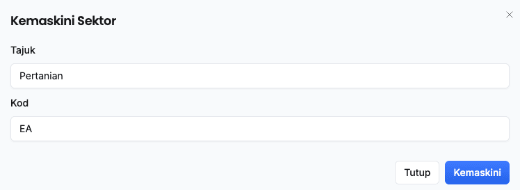 Kemaskini Maklumat Sektor Utama/Sektor/Sub-Sektor